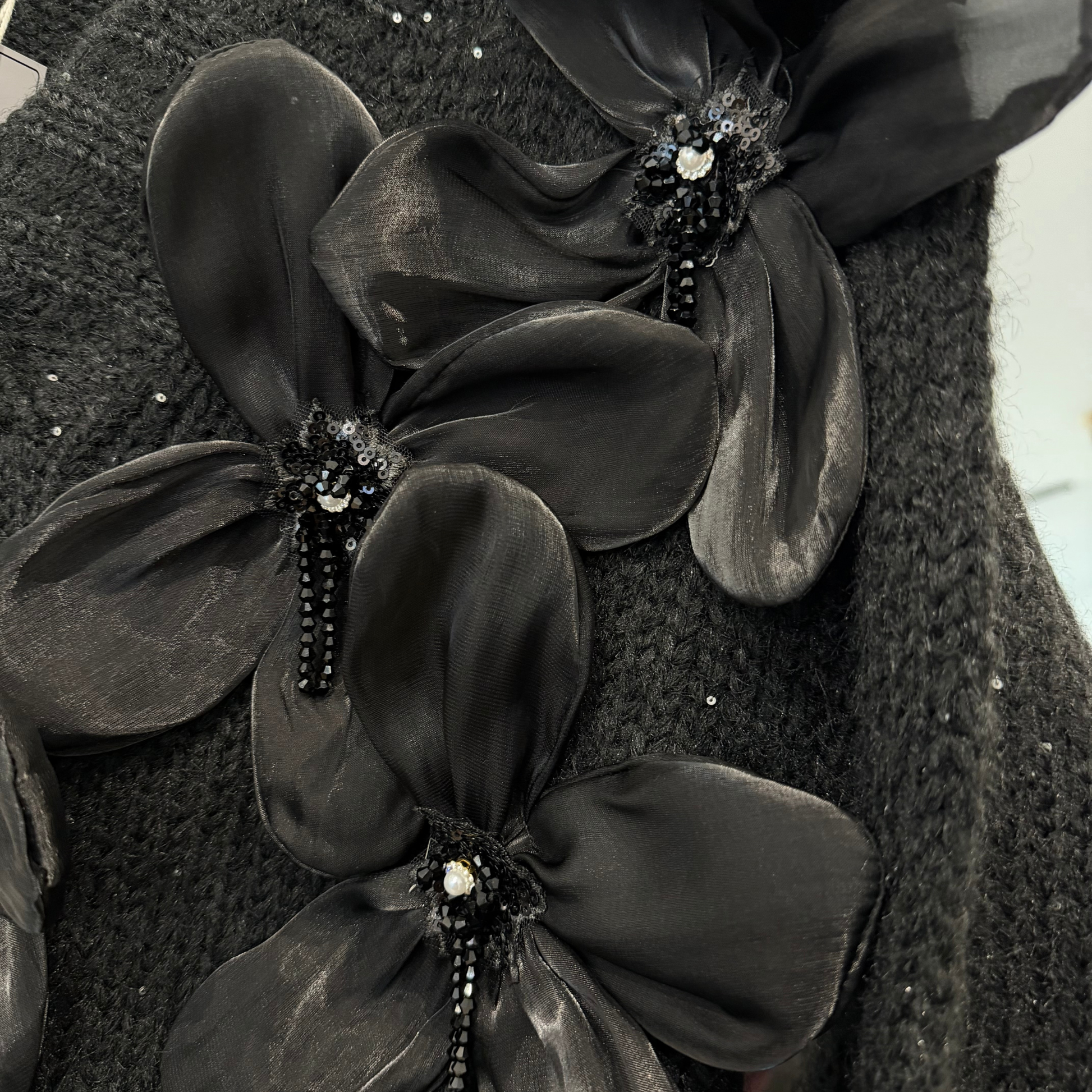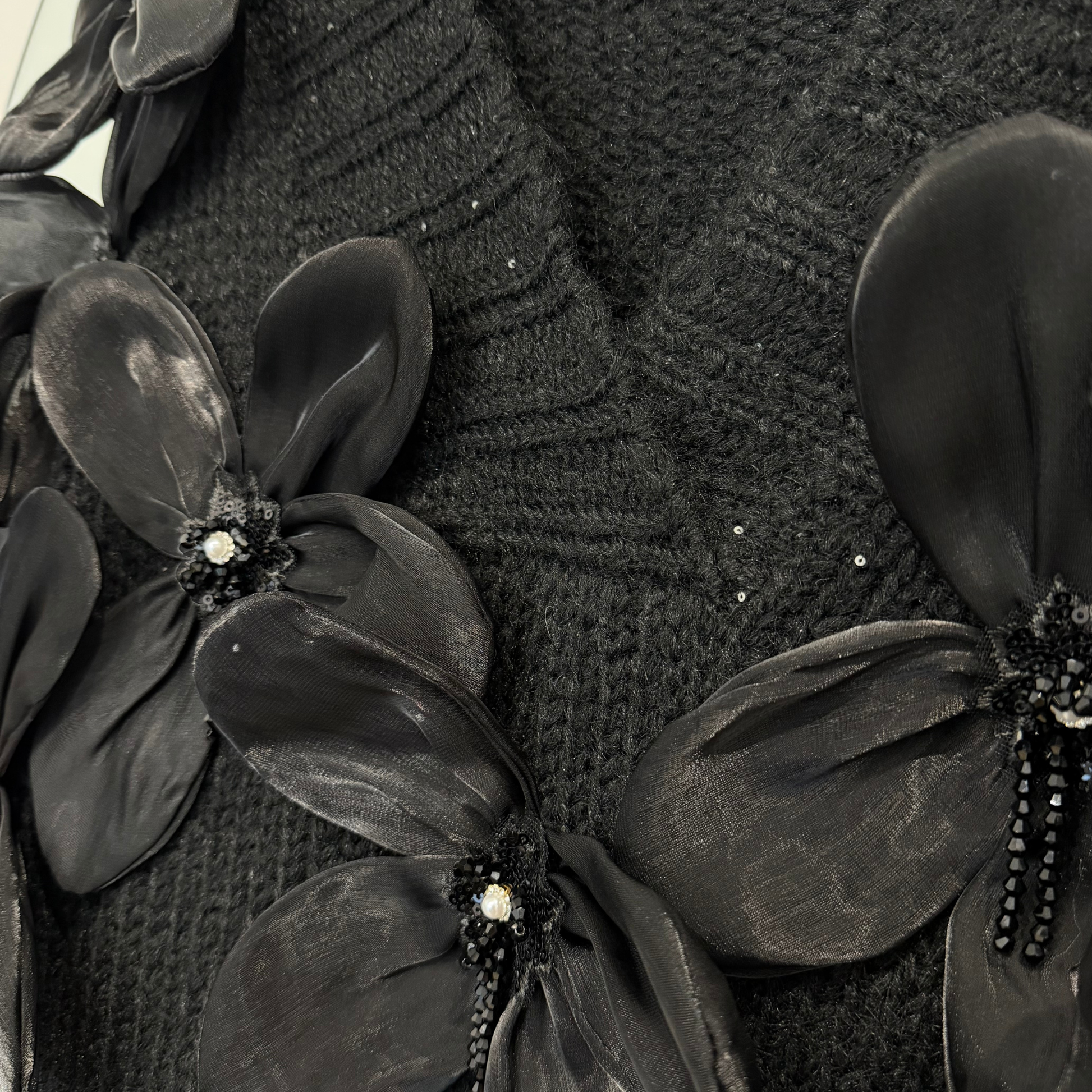 Camisolão em malha preta combina conforto com um toque glamoroso, perfeito para looks sofisticados ou casuais com estilo.