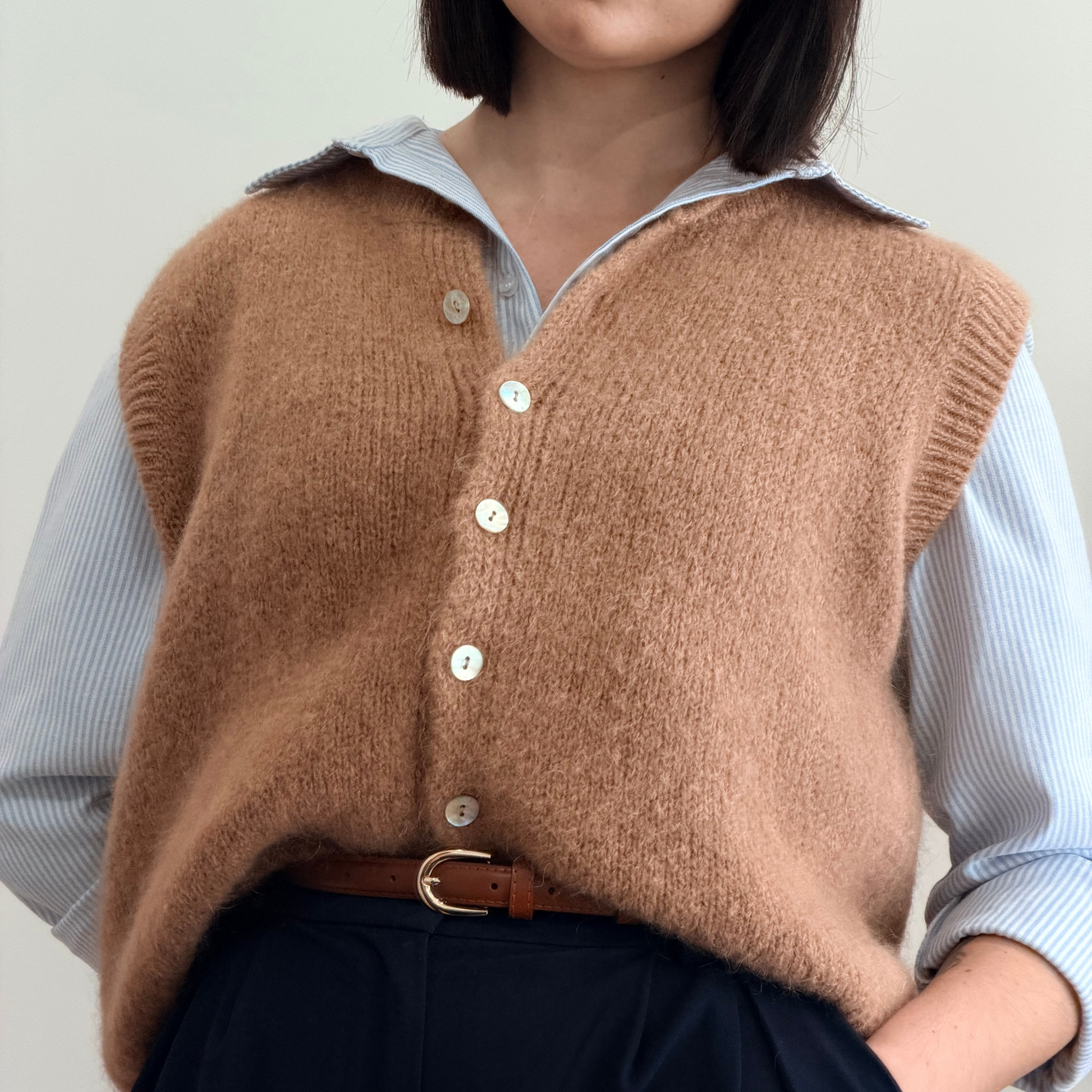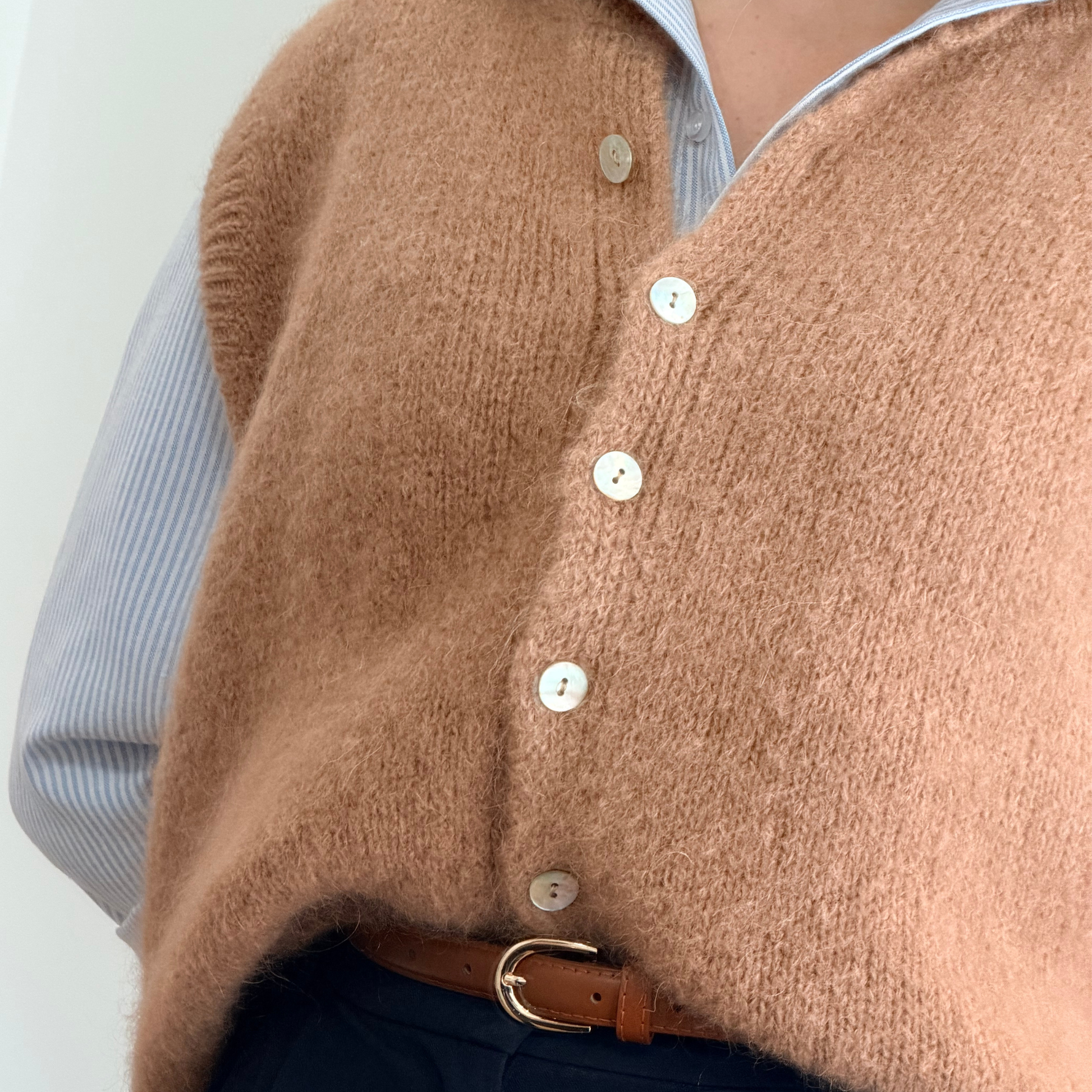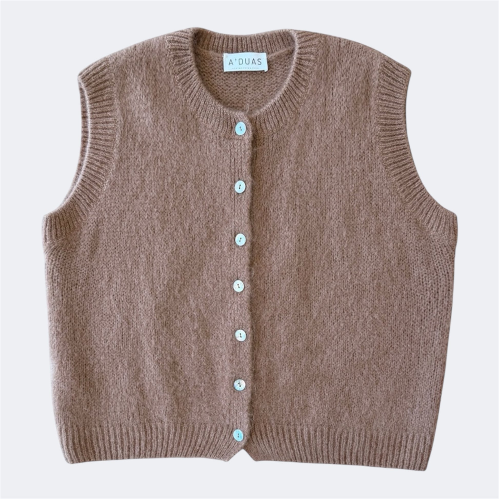 Colete em lã que combina elegância intemporal com um toque contemporâneo, perfeito para complementar qualquer look.
