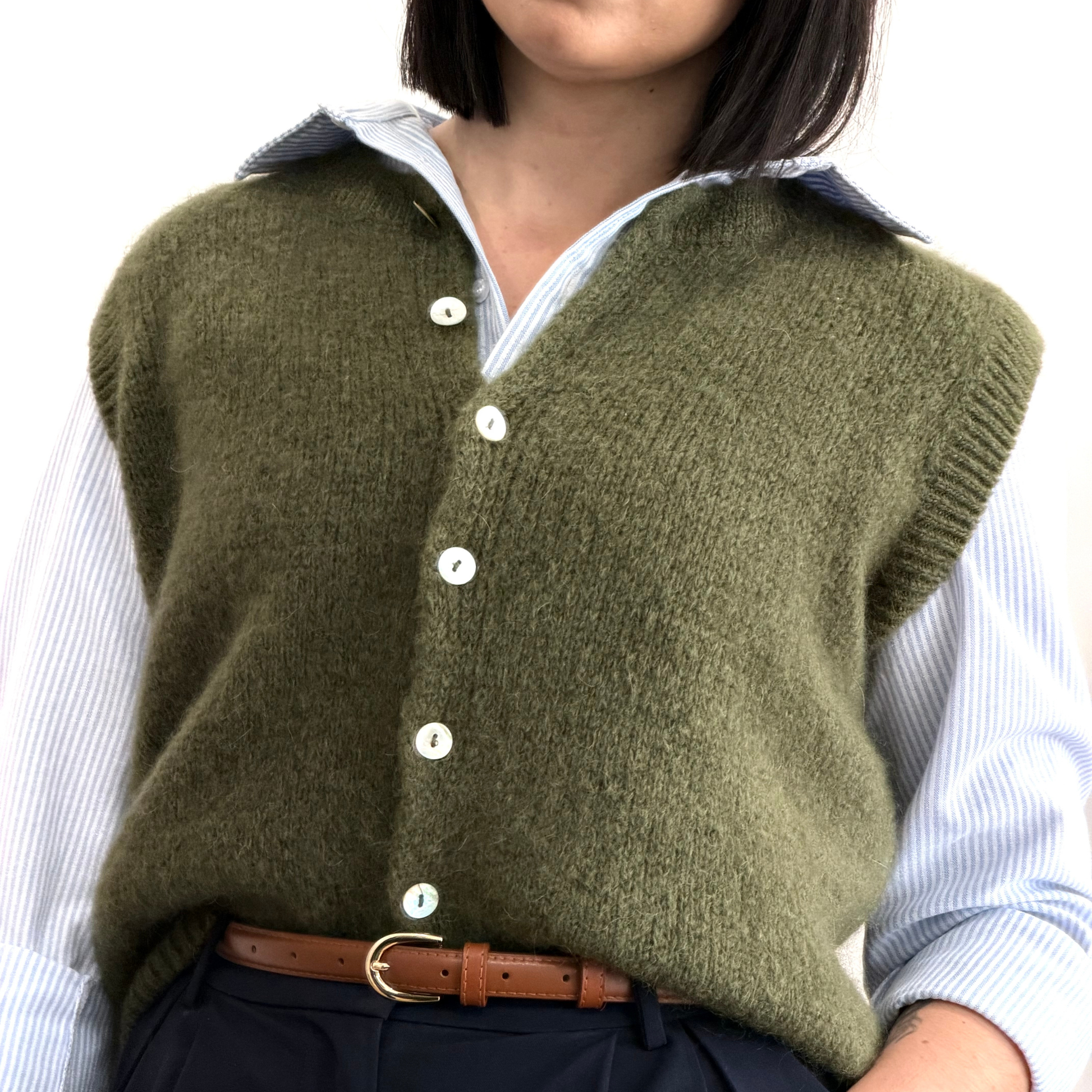 Colete em lã que combina elegância intemporal com um toque contemporâneo, perfeito para complementar qualquer look.